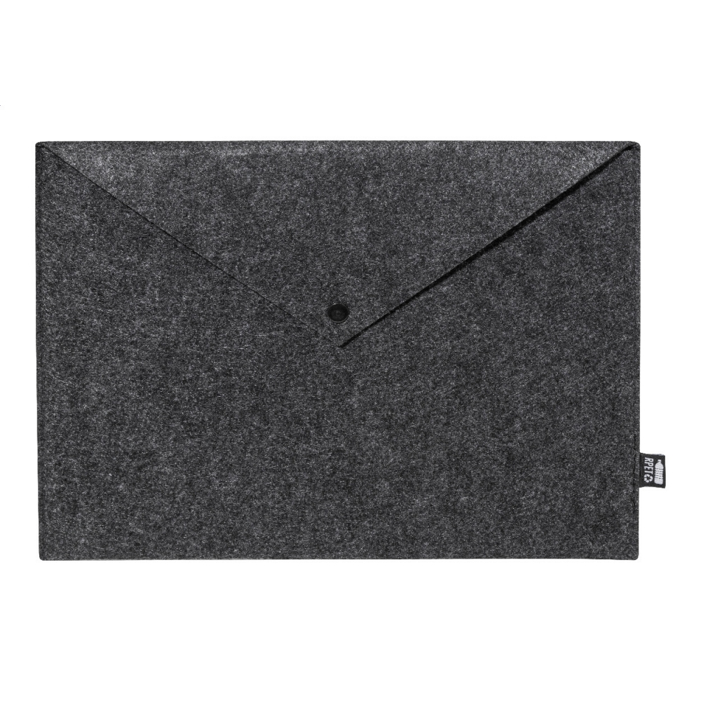 Artikel-Nr: AND800086-80Dokumenten- oder Laptoptasche aus RPET-Filz mit Druckknopfverschluss. Passend für Laptops bis 13 Zoll. Mit RPET-Label.