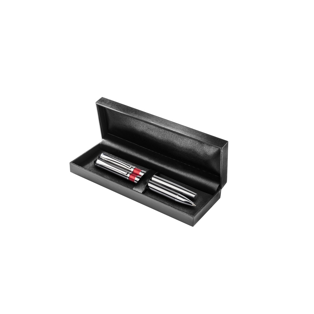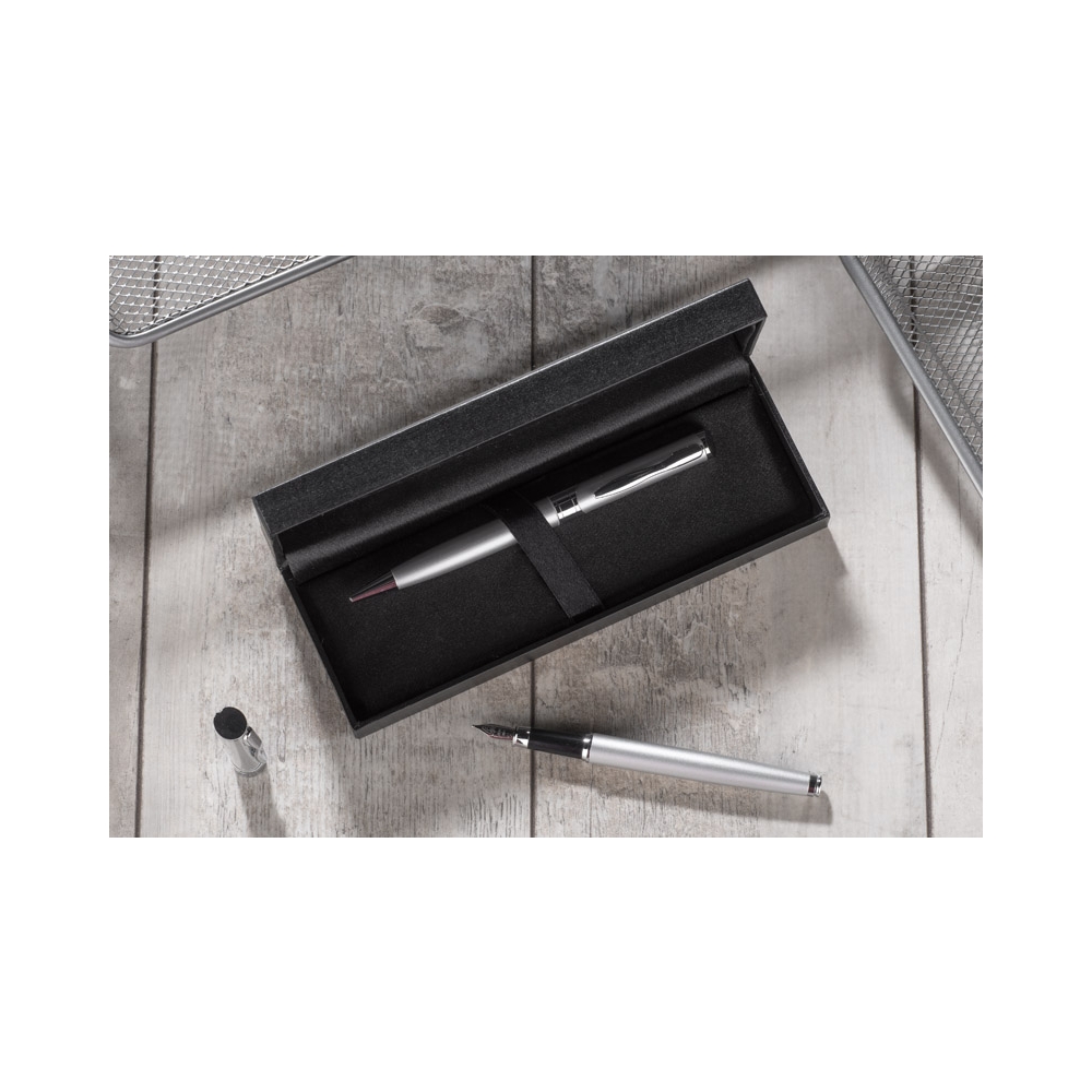 Artikel-Nr: ARD23684Eine elegante Schachtel für zwei Schreibgeräte aus schwarzem Kunststoff mit schwarzem Innenfutter. Ideall für alle Kugelschreibermodelle.