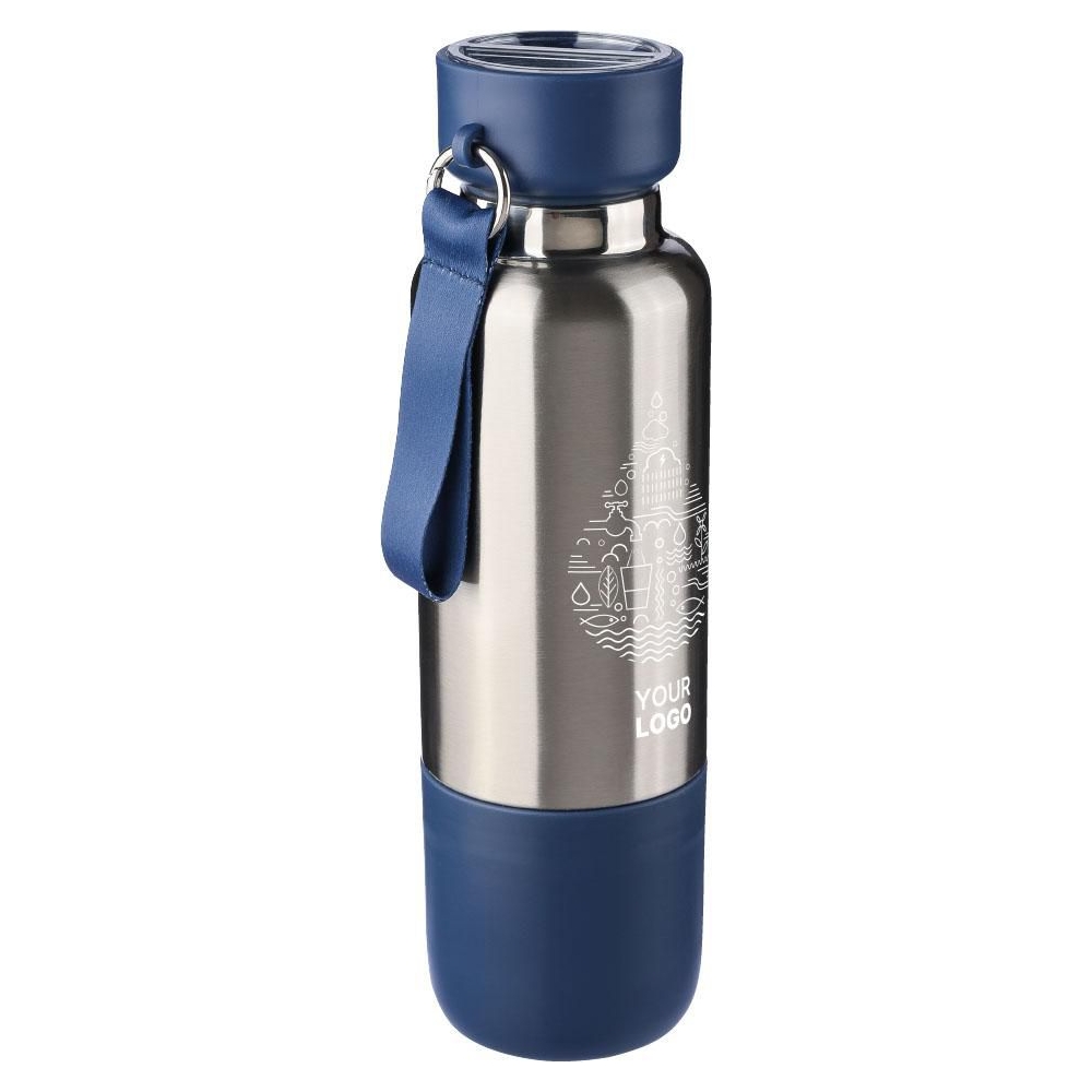 Artikel-Nr: GIV1272569005Doppelwandige Edelstahl-Trinkflasche (500 ml) mit einer Innenseite aus Edelstahl 304 und einer Außenseite aus Edelstahl 201. Ausgestattet mit einem PP-Schraubdeckel mit transparentem AS-Fach, austauschbaren Handgelenk- und Trageriemen aus Polyester und einem 200 ml PP-Trinkbecher im Boden. Silberner Korpus mit matten Farben im Detail. Einzeln verpackt in einer weißen Pappschachtel.