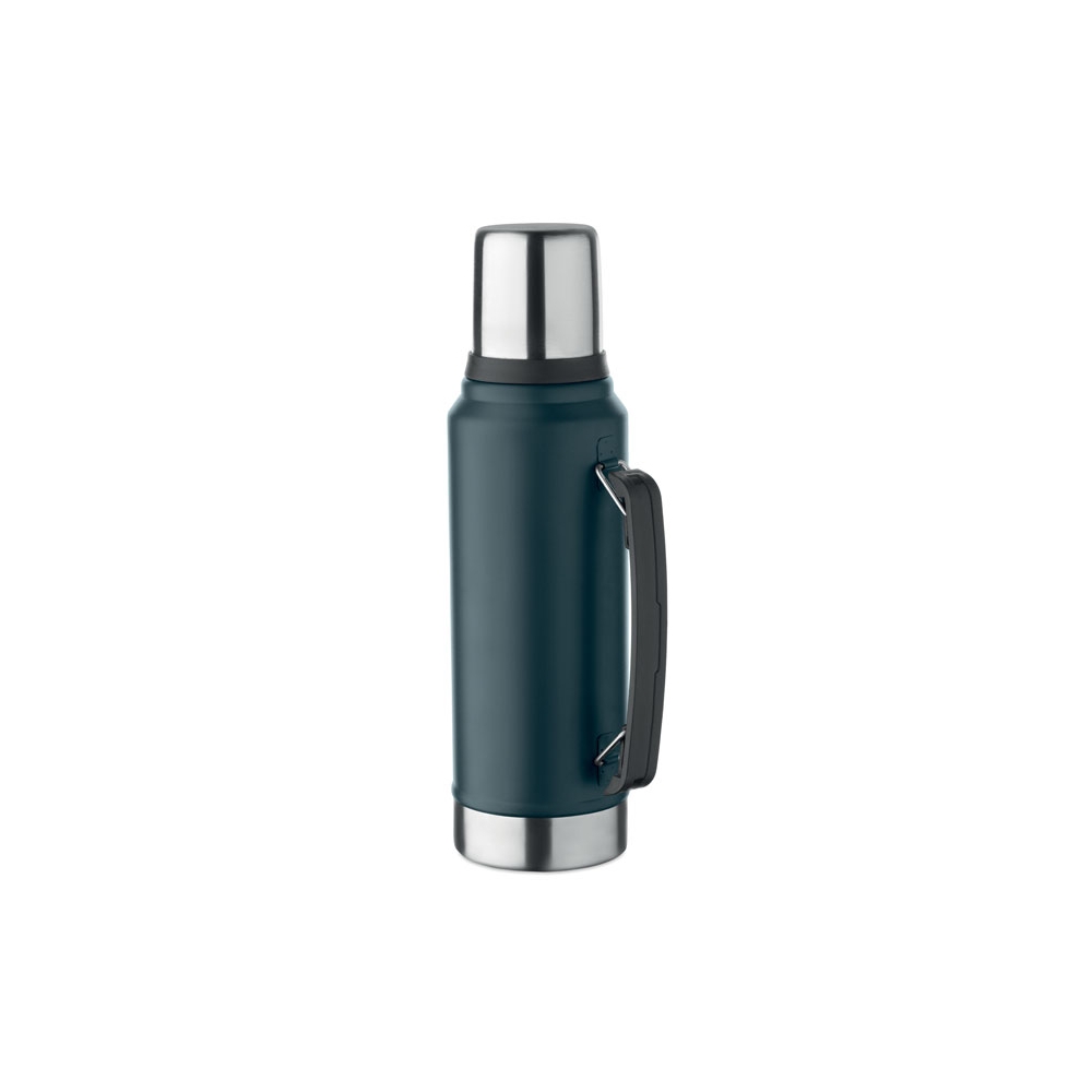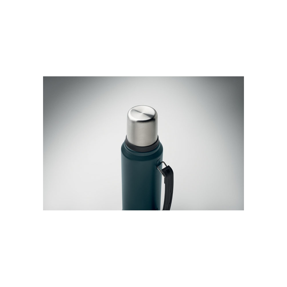 Artikel-Nr: OCBMO2710-85Doppelwandige Isolierflasche mit Becher aus recyceltem Edelstahl (90% recycelter Edelstahl und 10% Edelstahl) mit seitlichem Henkel. Verschluss aus PP. Auslaufsicher. Füllmenge: 1L.