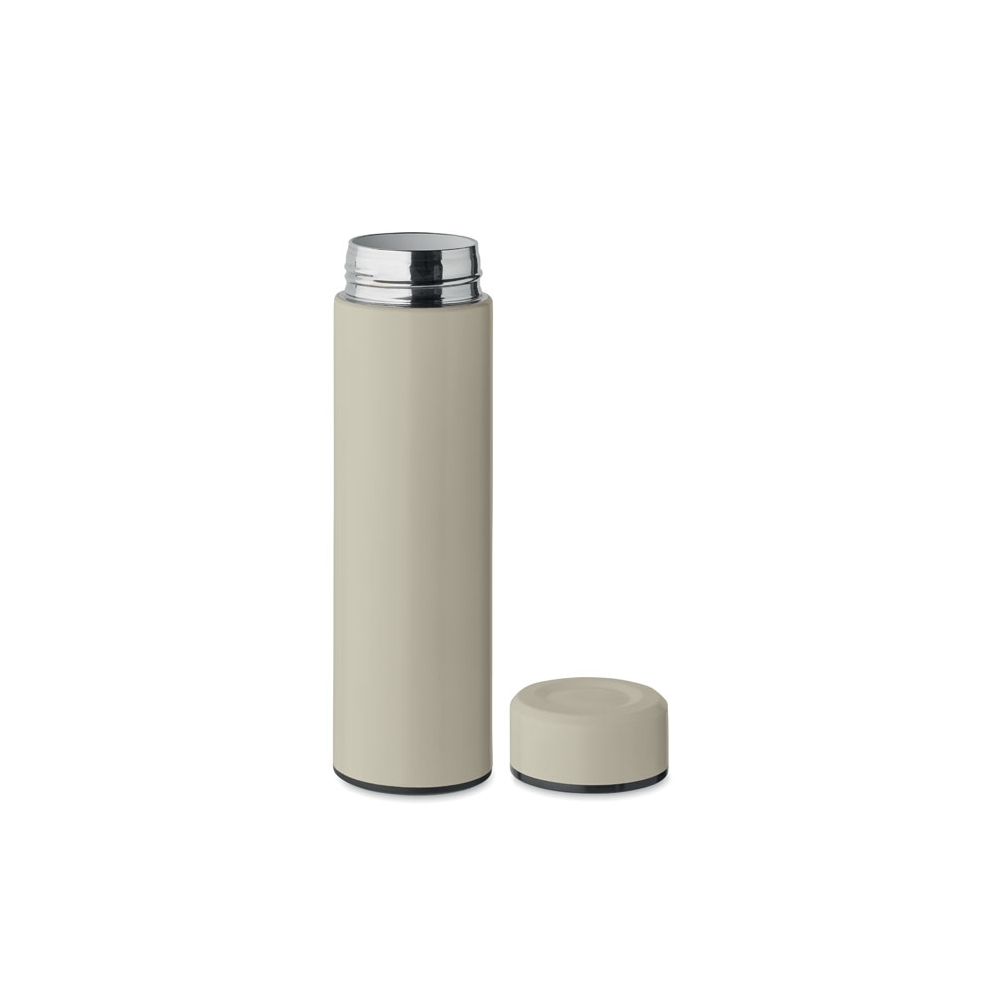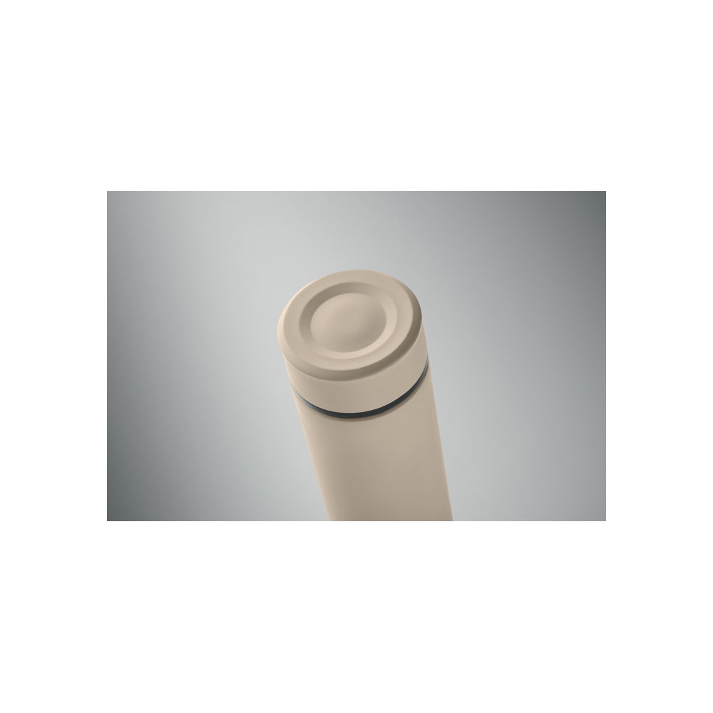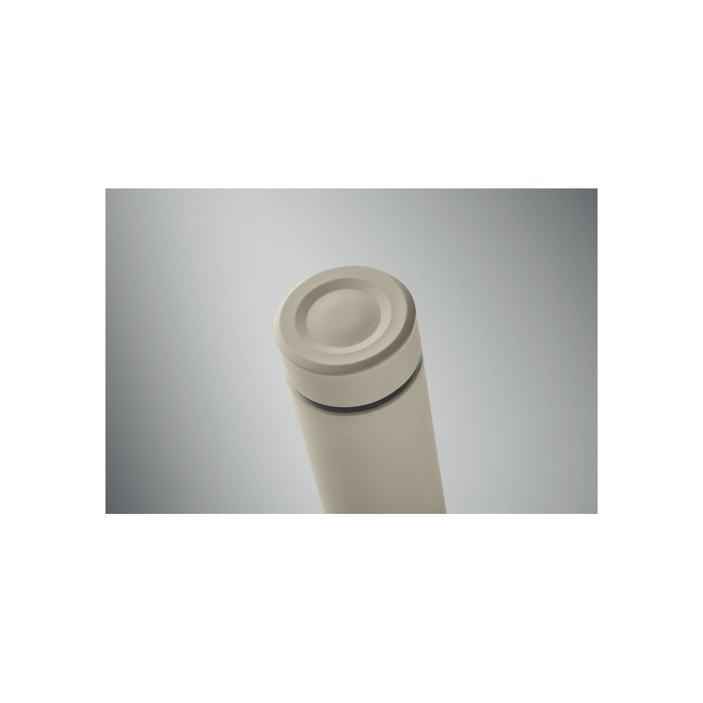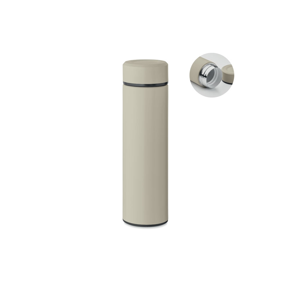 Artikel-Nr: OCBMO2383-65Doppelwandige Isolierflasche aus recyceltem Edelstahl (90 % recycelter Edelstahl und 10 % Edelstahl) mit keramischer Innenauskleidung. Auslaufsicher. Füllmenge: 420 ml.
