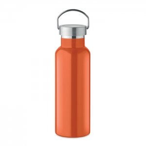 Artikel-Nr: OCBMO2107-10Doppelwandige Isolierflasche aus recyceltem Edelstahl (90 % recycelter Edelstahl und 10 % Edelstahl). Verschluss mit Henkel. Füllmenge: 500 ml.