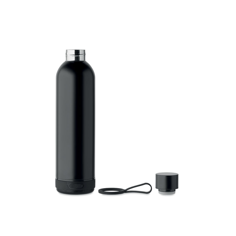 Artikel-Nr: OCBMO2312-03Doppelwandige Isolierflasche aus recyceltem Edelstahl (90 % recycelter Edelstahl und 10 % Edelstahl) und Silikonschlaufe. Füllmenge: 500 ml. Abnehmbarer kabelloser 3W-Lautsprecher. Inkl. 500 mAh Akku. Der Lautsprecher kann zur Reinigung abgenommen werden.