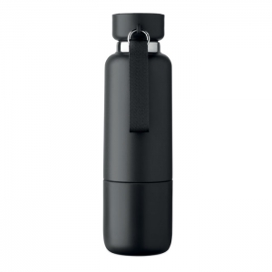 Artikel-Nr: OCBMO2716-03Doppelwandige Isolierflasche aus recyceltem Edelstahl (90 % recycelter Edelstahl und 10 % Edelstahl). Inkl. Becher im Boden, Handschlaufe und zusätzliches langes Band (70 cm) verstaut im Deckel aus PP. Auslaufsicher. Füllmenge: 500 ml.