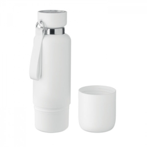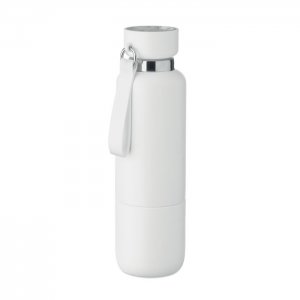 Artikel-Nr: OCBMO2716-06Doppelwandige Isolierflasche aus recyceltem Edelstahl (90 % recycelter Edelstahl und 10 % Edelstahl). Inkl. Becher im Boden, Handschlaufe und zusätzliches langes Band (70 cm) verstaut im Deckel aus PP. Auslaufsicher. Füllmenge: 500 ml.