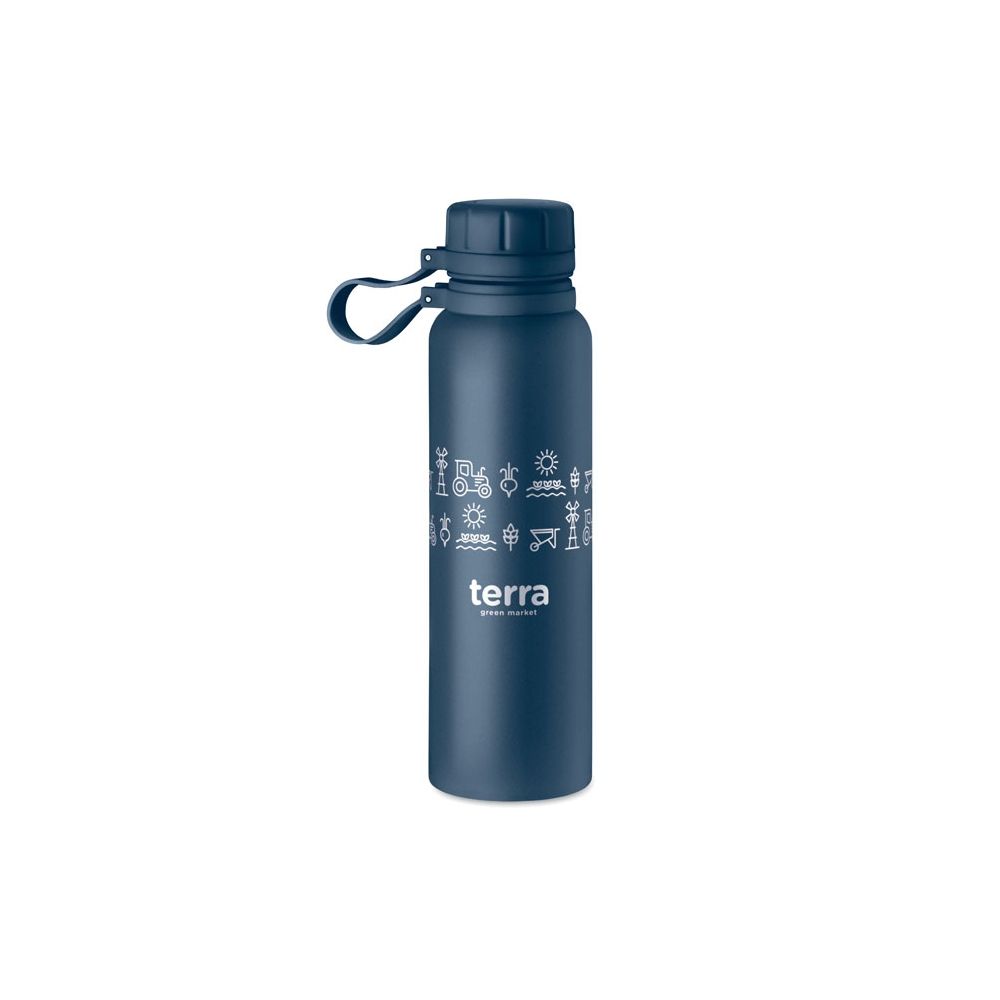 Artikel-Nr: OCBMO6760-85Doppelwandige Isolierflasche mit Schraubverschluss und Schlaufe aus Silikon. Edelstahl. Füllmenge: 780 ml.