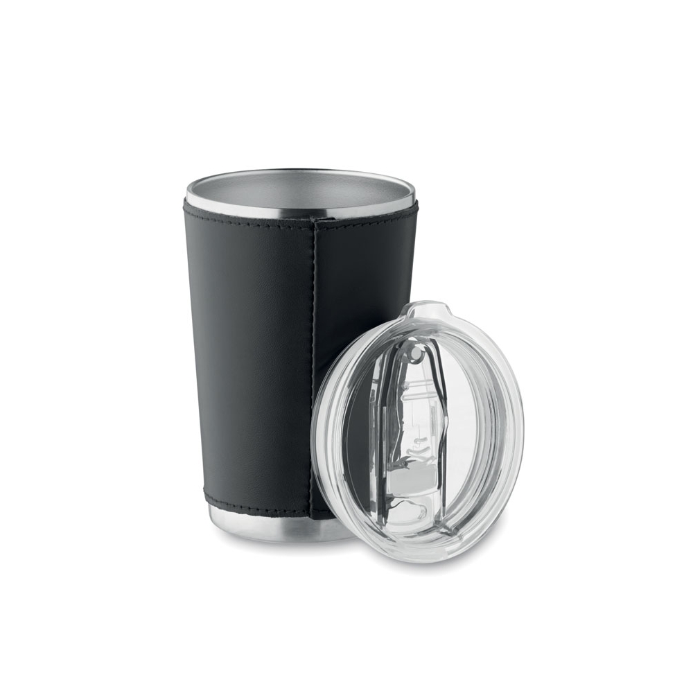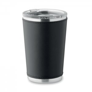 Artikel-Nr: OCBMO2412-03Doppelwandiger Trinkbecher aus recyceltem Edelstahl (90% recycelter Edelstahl und 10% Edelstahl) mit abnehmbarer Hülle aus PU. Schiebedeckel mit Trinköffnung. Auslaufsicher. Füllmenge: 350 ml.