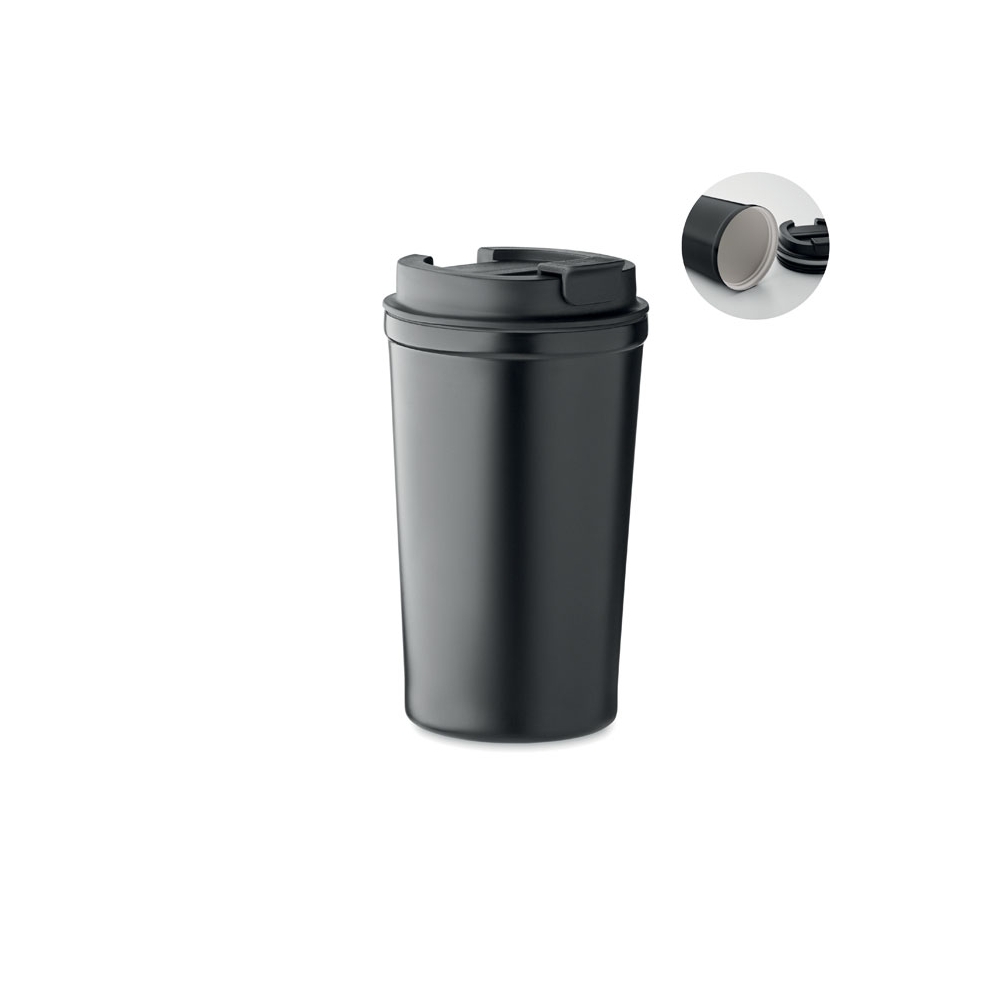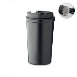 Artikel-Nr: OCBMO2398-03Doppelwandiger Trinkbecher aus recyceltem Edelstahl (90 % recycelter Edelstahl und 10 % Edelstahl) mit keramischer Innenauskleidung. Füllmenge: 450 ml.