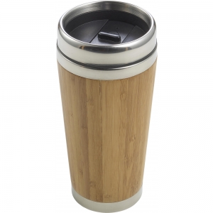 Artikel-Nr: GIV8947011Doppelwandiger Isolierbecher 'Singapur' (400 ml) aus Edelstahl und Bambus mit PP-Deckel.