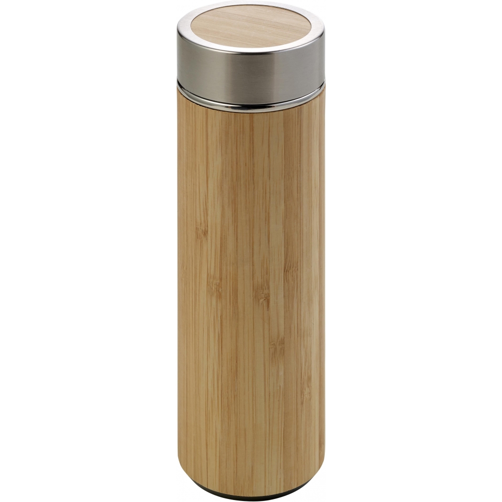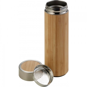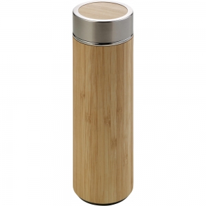 Artikel-Nr: GIV8858011Doppelwandiger Isolierbecher 'Ningbo' (420 ml), innen aus Edelstahl und außen aus Bambus. Der Becher wird mit einem Teesieb geliefert.