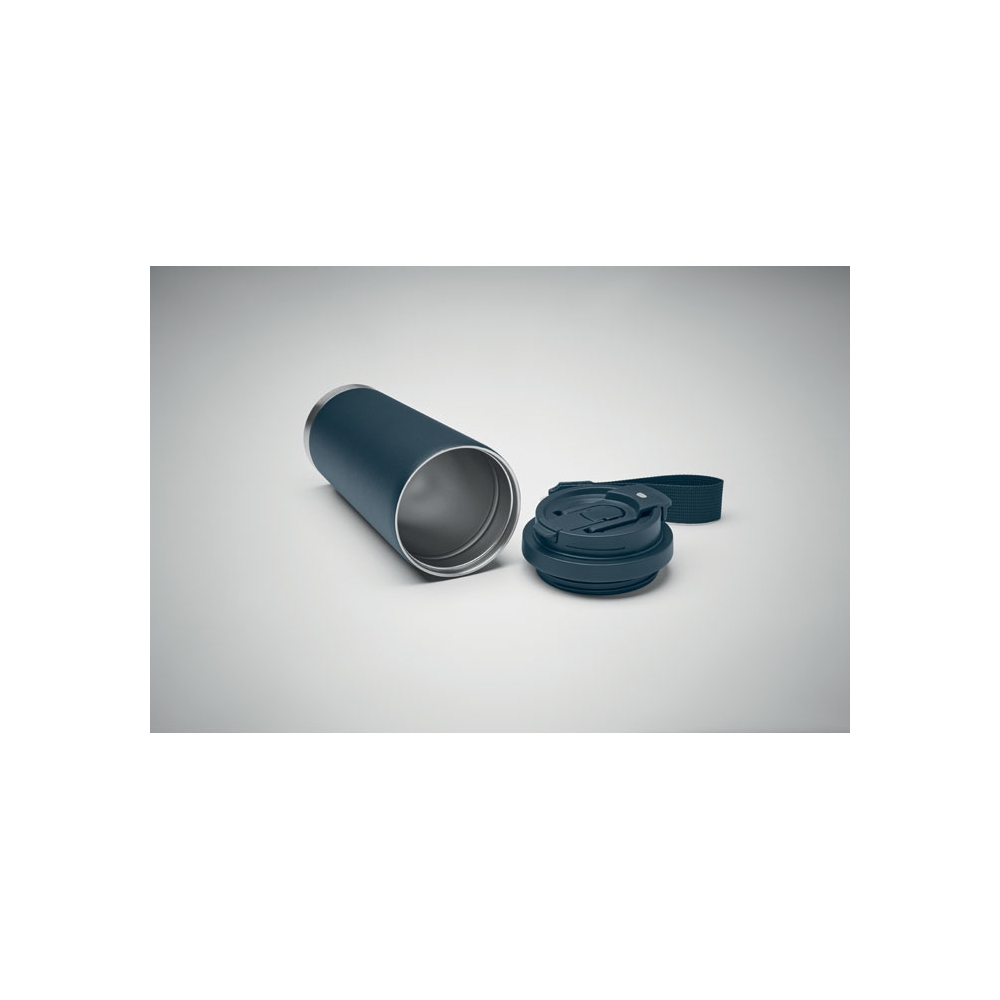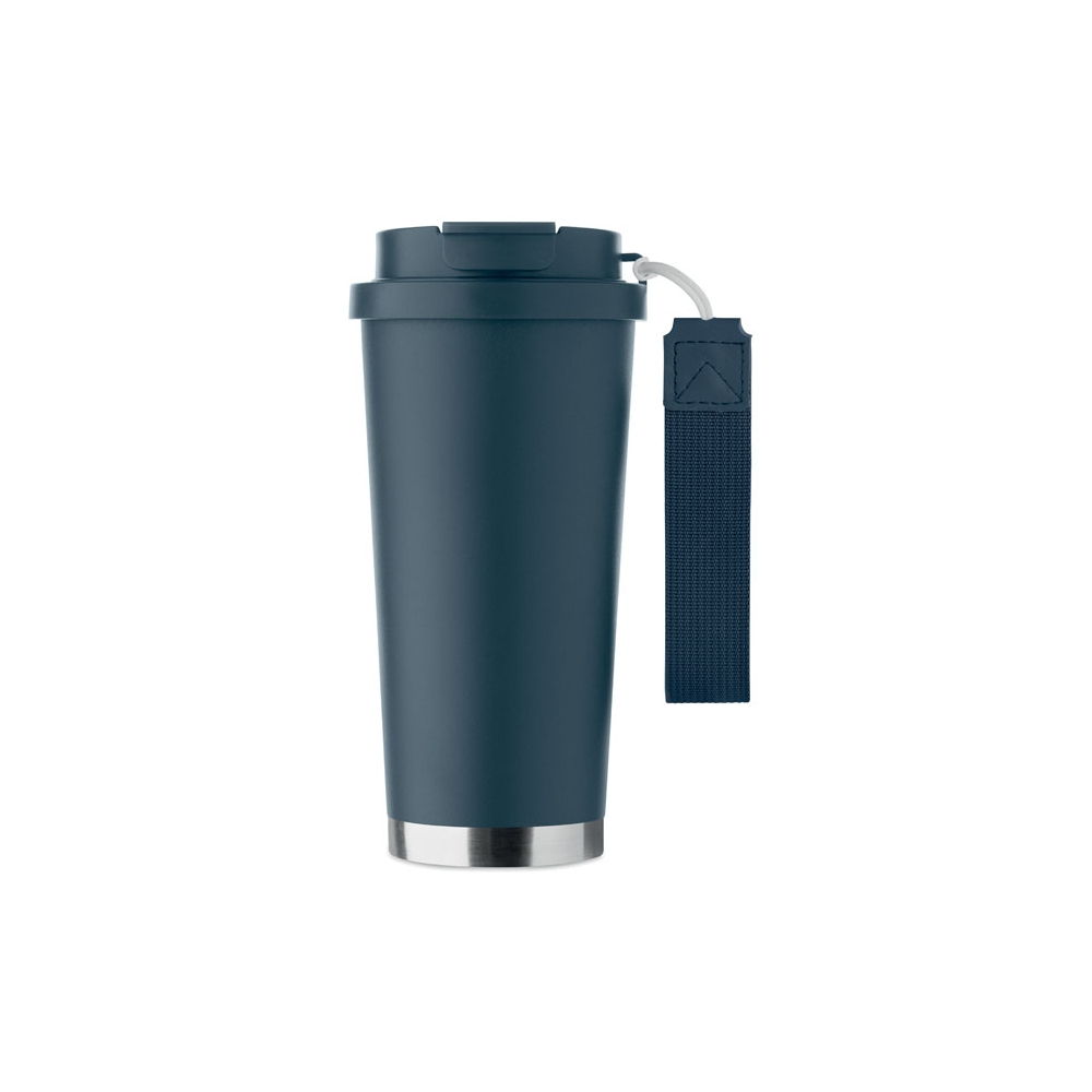 Artikel-Nr: OCBMO2662-85Doppelwandiger Becher aus recyceltem Edelstahl (90% recycelter Edelstahl und 10% Edelstahl). 2 in 1 PP-Deckel mit Trinköffnung und Trinkhalm sowie RPET-Trageband. Auslaufsicher. Füllmenge: 500 ml.