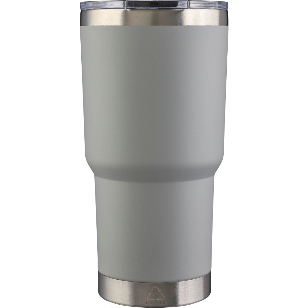 Artikel-Nr: GIV1171290005Doppelwandiger Edelstahlbecher (590 ml) mit PS-Deckel. Recycelt-Logo ist auf dem Becher eingraviert. Das Innere des Bechers besteht aus Edelstahl 304, das Äußere aus Edelstahl 201. Einzeln verpackt in einer braunen Pappschachtel.
