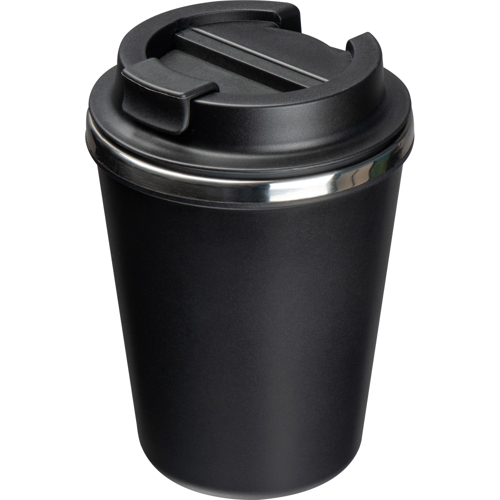 Artikel-Nr: EAG373003Matter doppelwandiger Trinkbecher aus Edelstahl mit Kunststoffummantelung, Trinkvorrichtung, verschließbarem Deckel und einem Füllvermögen von 350ml. Ihre Werbung bringen wir mittels eines Tampondrucks auf dem Becher an.