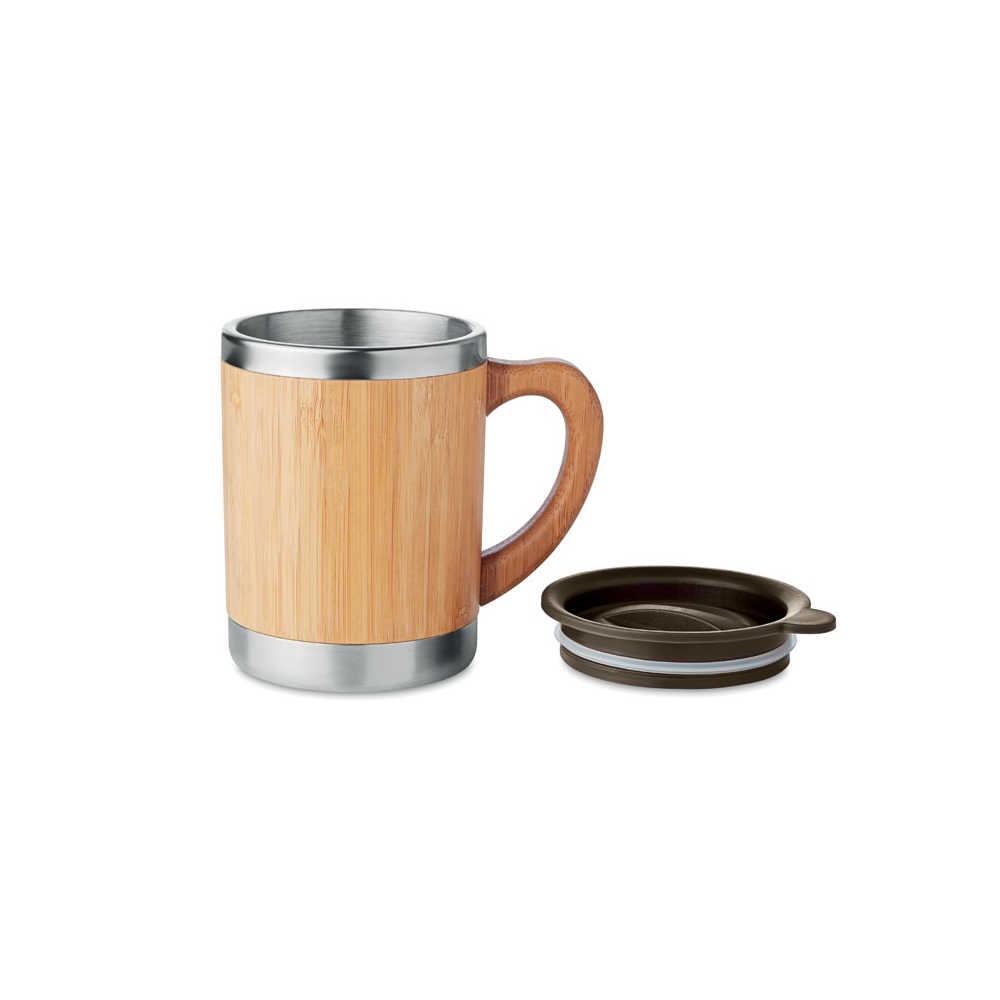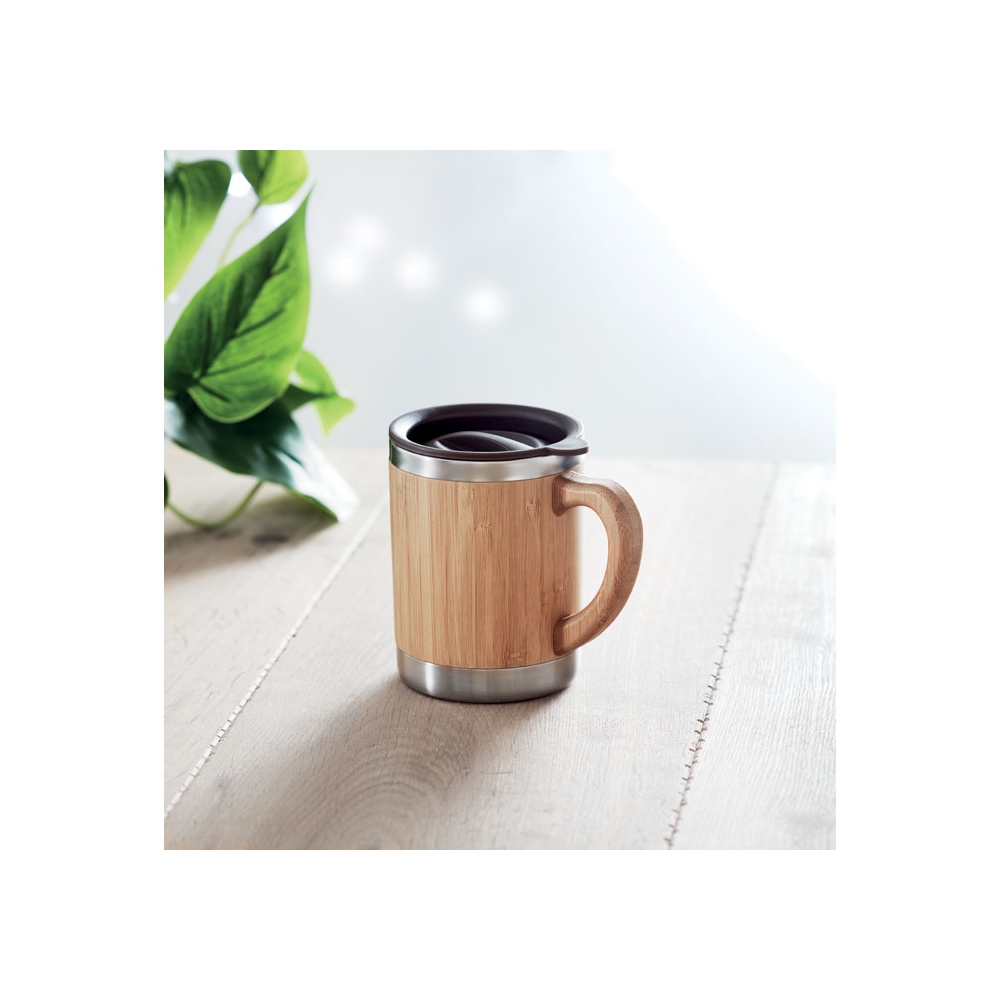 Artikel-Nr: OCBMO9689-40Doppelwandiger Trinkbecher aus Edelstahl mit Bambus-Finish. Drehbare Trinköffnung. Füllmenge: 300 ml. Bambus ist ein natürliches Produkt, es kann daher zu leichten Abweichungen in Farbe, Dekor und Maßen kommen.