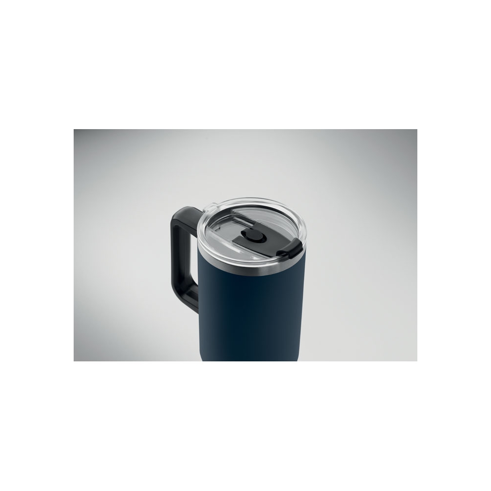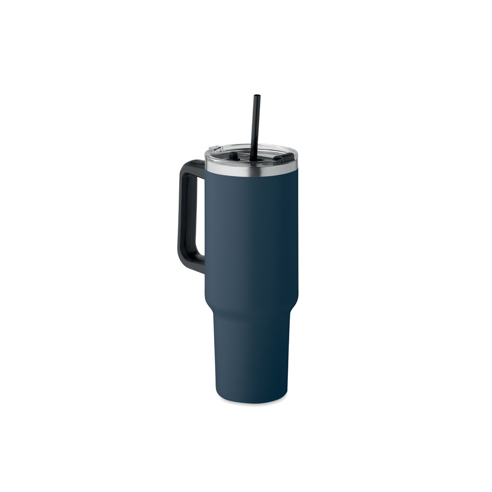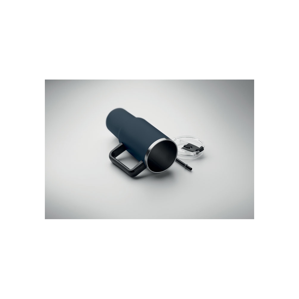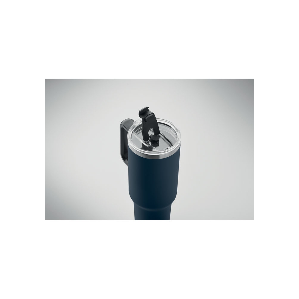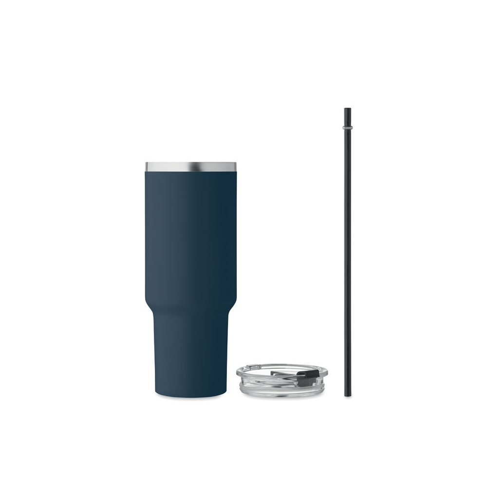 Artikel-Nr: OCBMO2327-85Doppelwandiger Trinkbecher aus recyceltem Edelstahl. Verschluss mit integriertem PE-Trinkhalm. Füllmenge: 1200 ml. (90 % recycelter Edelstahl und 10 % Edelstahl).