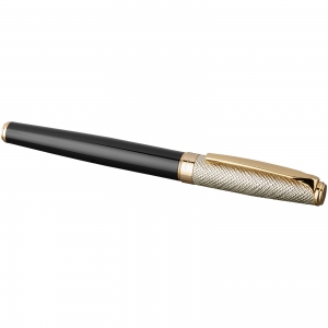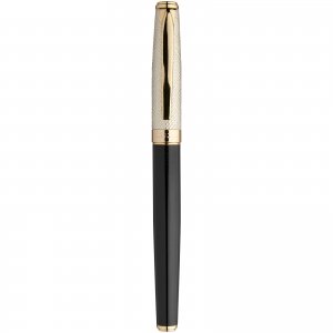 Artikel-Nr: CPO10729200Ein luxuriöser Tintenroller mit goldener Lederkappe und lackierten goldenen Teilen, geliefert in einer Luxe-Geschenkbox. Der untere Schaft besteht aus Messing mit Lack und der obere Schaft ist aus Messing und PU-Kunststoff gefertigt. Tintenroller: 14 x 1,15 cm, Gewicht: 32 g, Schreiblänge: 500 m.