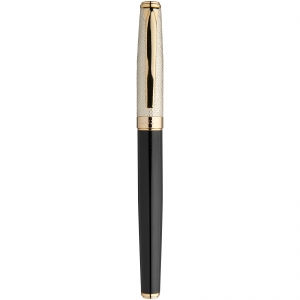 Artikel-Nr: CPO10729200Ein luxuriöser Tintenroller mit goldener Lederkappe und lackierten goldenen Teilen, geliefert in einer Luxe-Geschenkbox. Der untere Schaft besteht aus Messing mit Lack und der obere Schaft ist aus Messing und PU-Kunststoff gefertigt. Tintenroller: 14 x 1,15 cm, Gewicht: 32 g, Schreiblänge: 500 m.