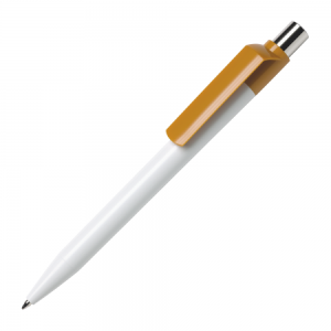 Artikel-Nr: PRM127003_17ADOT D1 BC CR Kugelschreiber Maxema, Nüchtern und minimalistisch im Design - aber versehen mit einer ganz persönlichen Maxema-Note, dem kleinen Pünktchen im Drücker, wird dieses oft vernachlässigte Detail zu einem echten Stilelement. Das Gehäuse des Kugelschreibers ist aus hochglänzendem, solidem, weißem ABS gefertigt, der Drücker aus hochglänzendem Metall. Drücker-Element und Clip sind in 20 Farben lieferbar, die bereits ab 2.000 Stück untereinander kombinierbar sind. Er ist mit einer blauschreibenden Großraummine ausgestattet.