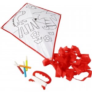 Artikel-Nr: GIV7818008Drachen aus Polyester, inkl. 4 Filzstiften (Rot, Orange, Gelb, Blau) zum kreativen Gestalten, mit Kunststoffgriff.