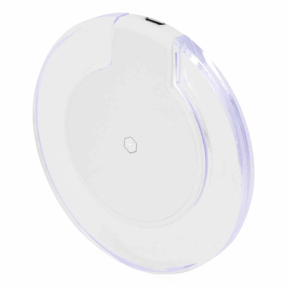 Artikel-Nr: INP56-1107243Drahtlose Ladestation INDUCTION: kabelloses Aufladen des Gerätes durch Auflegen auf die Kontaktfläche (Gerät muss für induktives Laden gerüstet sein), inkl. USB-Ladekabel mit Micro-USB Stecker (Länge: ca. 70 cm), rote LED-Leuchte in der Mitte zeigt Betriebsbereitschaft an, während des Ladevorgangs leuchtet transparenter Ring blau, Eingangsleistung: 5V/2A, Ausgangsleistung: 5V/1A, 5 rutschhemmende Füße auf der Unterseite und Gummiring auf der Oberseite, in Box