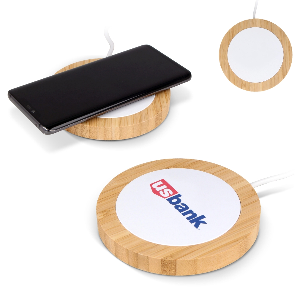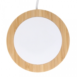 Artikel-Nr: ART95554N0194Drahtloses Ladegerät, hergestellt aus Bambus und recyceltem Abs-Material. Kompatibel für Handys, die Qi unterstützen. Leistung: 5W, 7,5W, 10W, 15W. Überhitzungsschutz. Mit großer Druckfläche für Vollfarbaufdruck und 1 Meter Ladekabel. Ideal für Ihr grüneres und nachhaltigeres (Heim-)Büro.