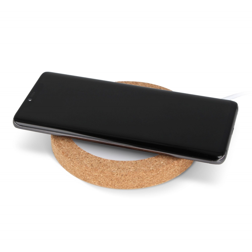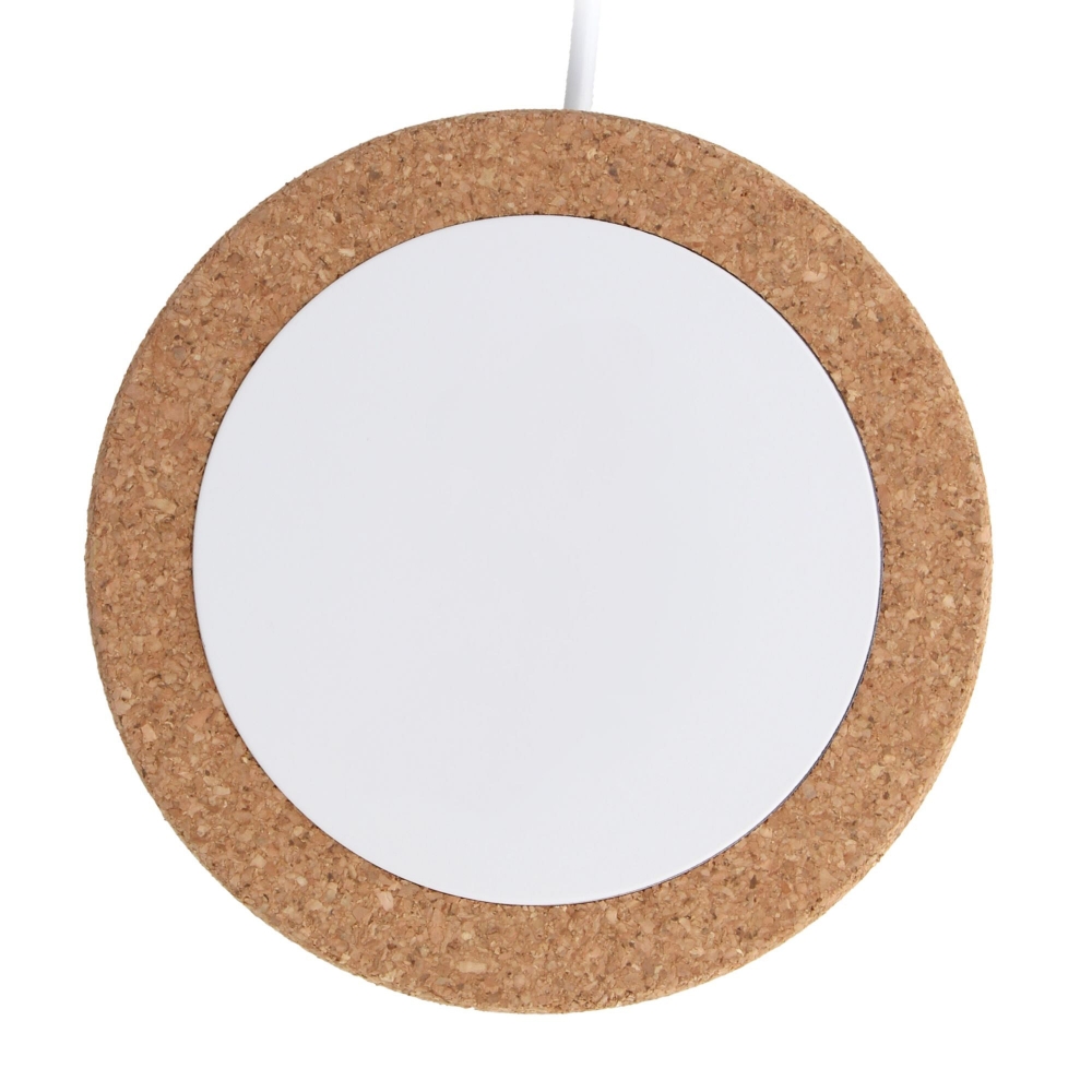 Artikel-Nr: ART95555N0194Drahtloses Ladegerät, hergestellt aus Kork und recyceltem Abs-Material. Kompatibel für Handys, die Qi unterstützen. Leistung: 5W, 7,5W, 10W, 15W. Überhitzungsschutz. Mit großem Druckbereich für Vollfarbaufdruck und 1 Meter Ladekabel. Ideal für Ihr grüneres und nachhaltigeres (Heim-)Büro.