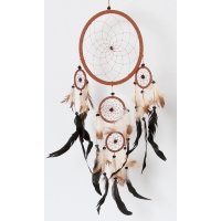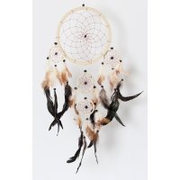Artikel-Nr: 375107721Dekoratives Windspiel und trendiger Wandbehang für drinnen. Nach Überlieferung der amerikanischen Ureinwohner, zaubert der Dreamcatcher, über das Bett gehängt, schlechte Träume weg und schöne herbei. Aus Leder mit echten Federn. Länge: 50 cm. Verschiedene Farben sortiert.