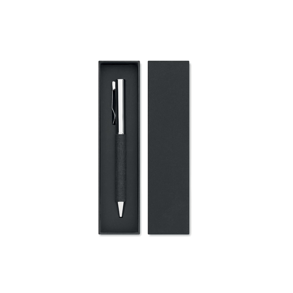 Artikel-Nr: OCBMO2332-03Drehkugelschreiber aus Metall mit Details aus RPET-Polyester. Lieferung in Geschenkbox. Blaue Tinte.
