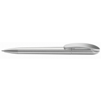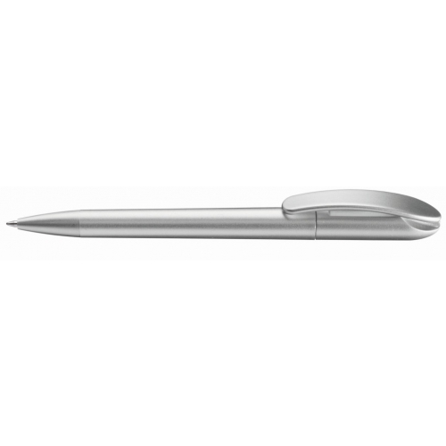 Drehkugelschreiber in uni silber mit schwerer matt verchromter Metallspitze.