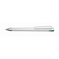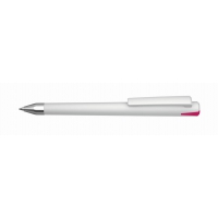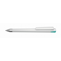 Artikel-Nr: 60210147SIDrehkugelschreiber mit gedeckt glänzendem Gehäuse, Oberteil mit farbigem Stopfen in gedeckt oder transparent, schwerer Metallspitze glanzverchromt.
