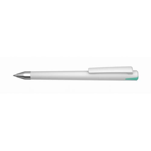 Artikel-Nr: 60210147SIDrehkugelschreiber mit gedeckt glänzendem Gehäuse, Oberteil mit farbigem Stopfen in gedeckt oder transparent, schwerer Metallspitze glanzverchromt.