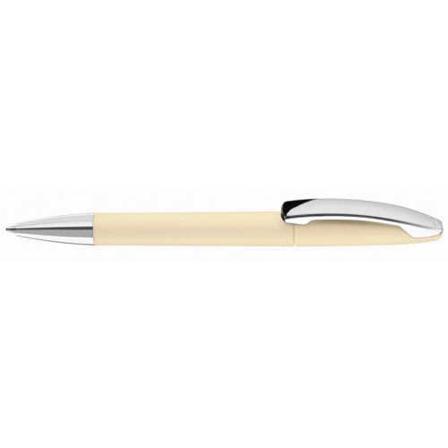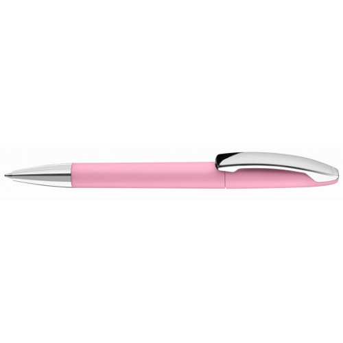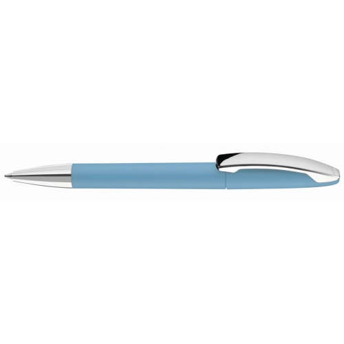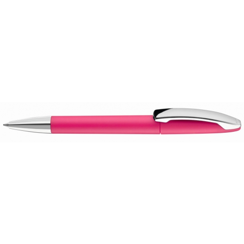 Artikel-Nr: 60200056MSIGUMDrehkugelschreiber mit farbigem Softtouch-Gehäuse, silber glänzender Spitze und glänzendem Metallclip.
