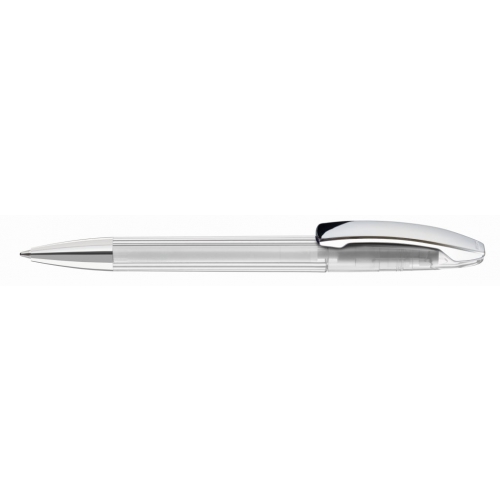 Artikel-Nr: 60200056TMSIDrehkugelschreiber mit transparent glänzendem Gehäuse, Metallclip und Spitze glanzverchromt.