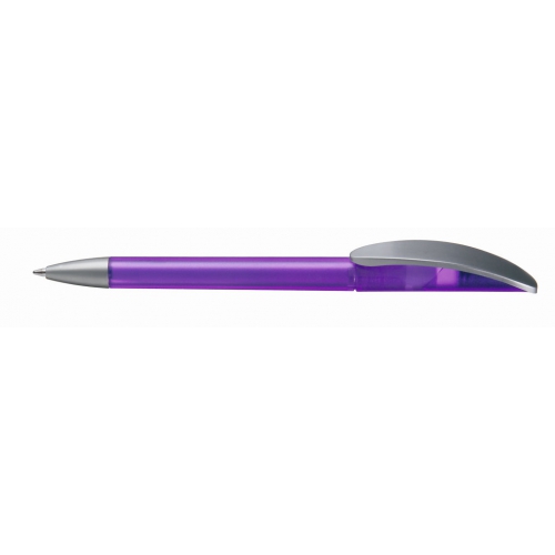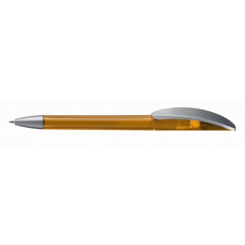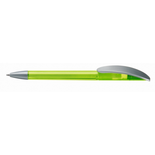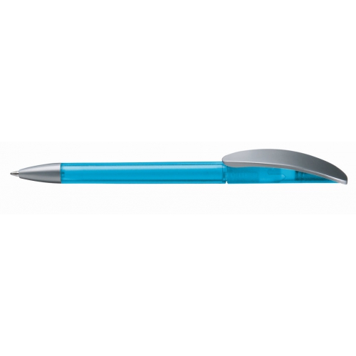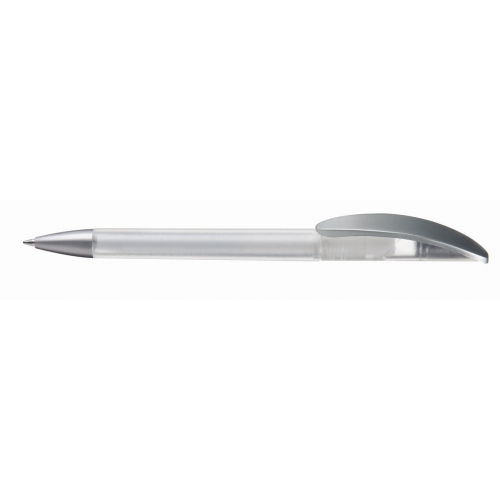 Artikel-Nr: 60200046Kugelschreiber mit Drehmechanik und transparent gefrostetem oder gedecktem Gehäuse. Matt silberner Bogenclip und schwerer, matt verchromter Metallspitze.