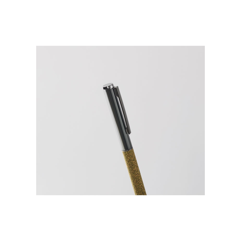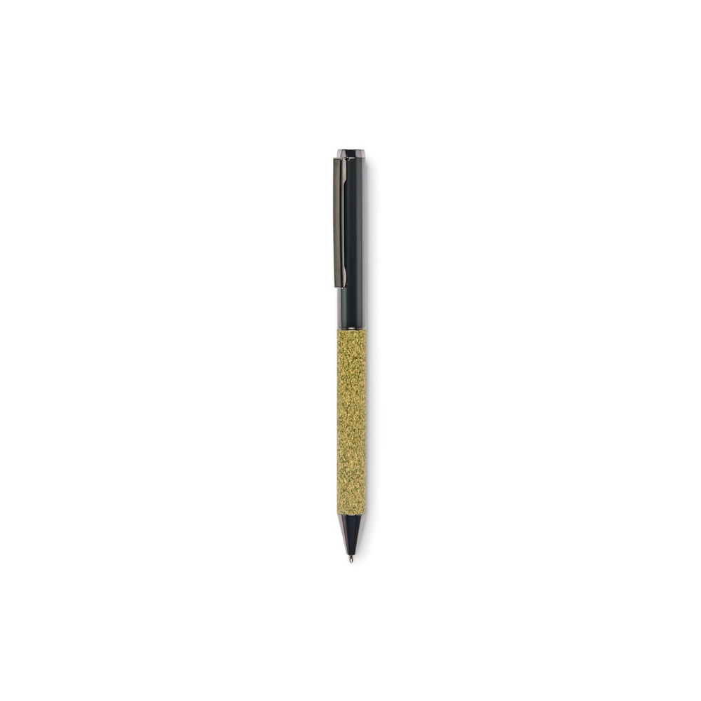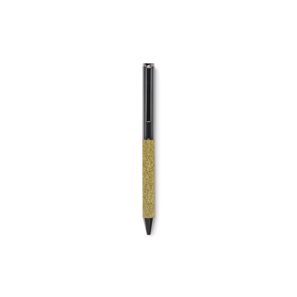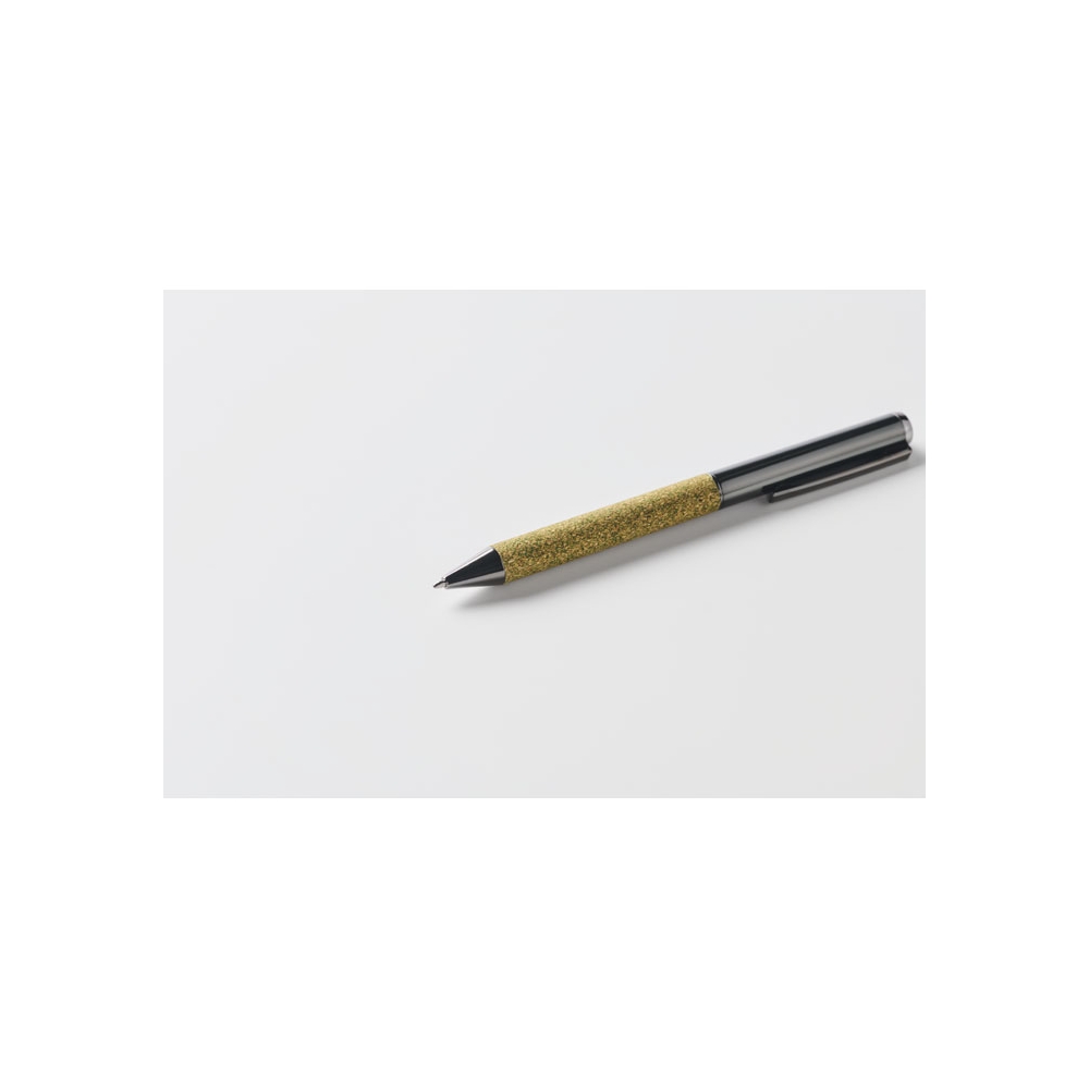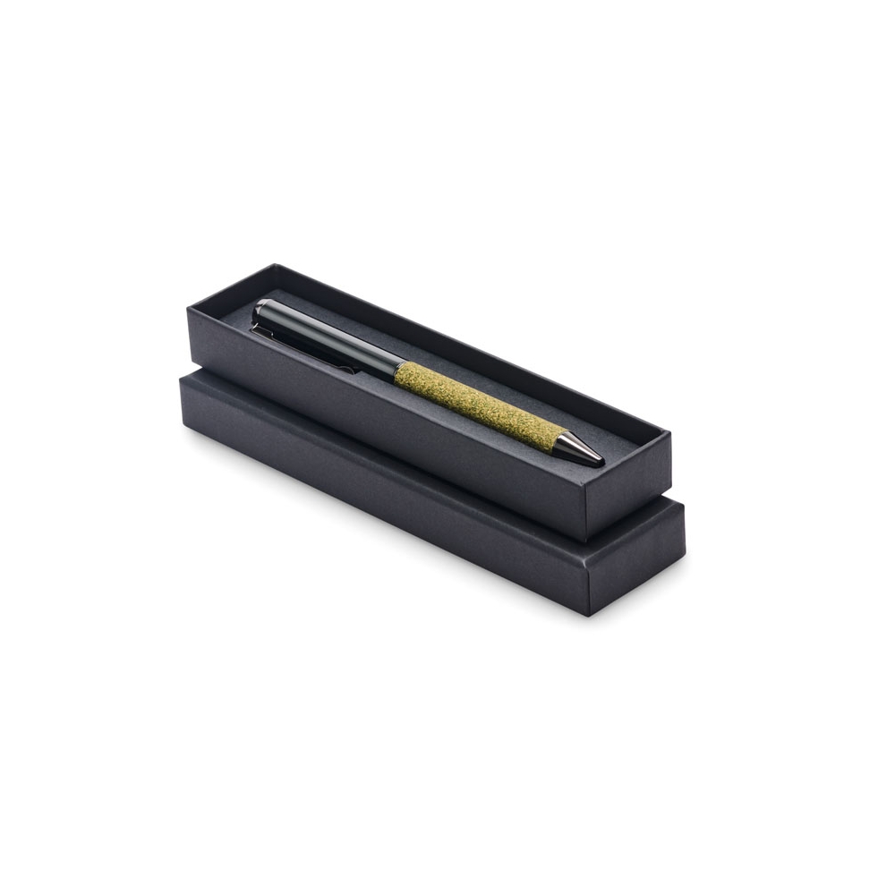 Artikel-Nr: OCBMO2632-09Drehkugelschreiber aus Metall. Schaft mit Dekor aus 20% Teesatz, 30% Kork, 50% Polycotton. Lieferung in Schachtel. Blaue Tinte.