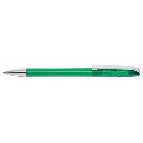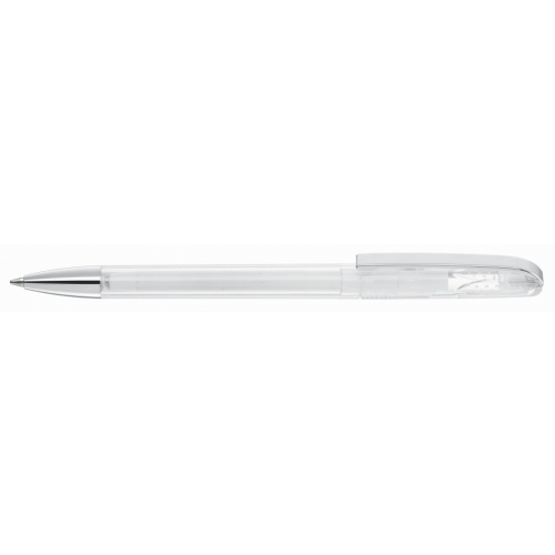Artikel-Nr: 60200146TSIDrehkugelschreiber mit glänzend transparentem Gehäuse, schwerer glänzender Metallspitze und Metallclip. Griffnoppen in der Kappe unterstützen den komfortablen Drehmachanismus.