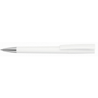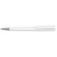 Artikel-Nr: 60210047SIDrehkugelschreiber mit weiß oder schwarz glänzend gedecktem Gehäuse, silbernem Stopfen im Oberteil und schwerer Metallspitze glanzverchromt.