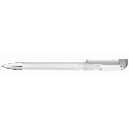 Artikel-Nr: 60200096TSIDrehkugelschreiber mit transparent glänzendem Gehäuse, gefrosteter Clipoberfläche und Spitze glanzverchromt.