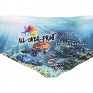 Artikel-Nr: GUT10007680Ein Dreiecktuch ist bei sitzenden Tieren, die einen T-Shirt-Aufdruck mit ihren Vorderbeinen verdecken würden, die richtige Wahl, um Werbung optimal in Szene zu setzen. Das Dreiecktuch All-Over-Print besteht aus recyceltem Plastik, u. a. Upcycled Marine Plastic aus den Weltmeeren. Hiermit lassen sich auffallende Accessoires basierend auf Arbeitskleidung, Saisons, Jahreszeiten, Events oder nahezu allen fotorealistischen Motiven erstellen. Erhältlich in verschiedenen Größen. Stylish für Ihre Kunden, gut für unsere Umwelt!
