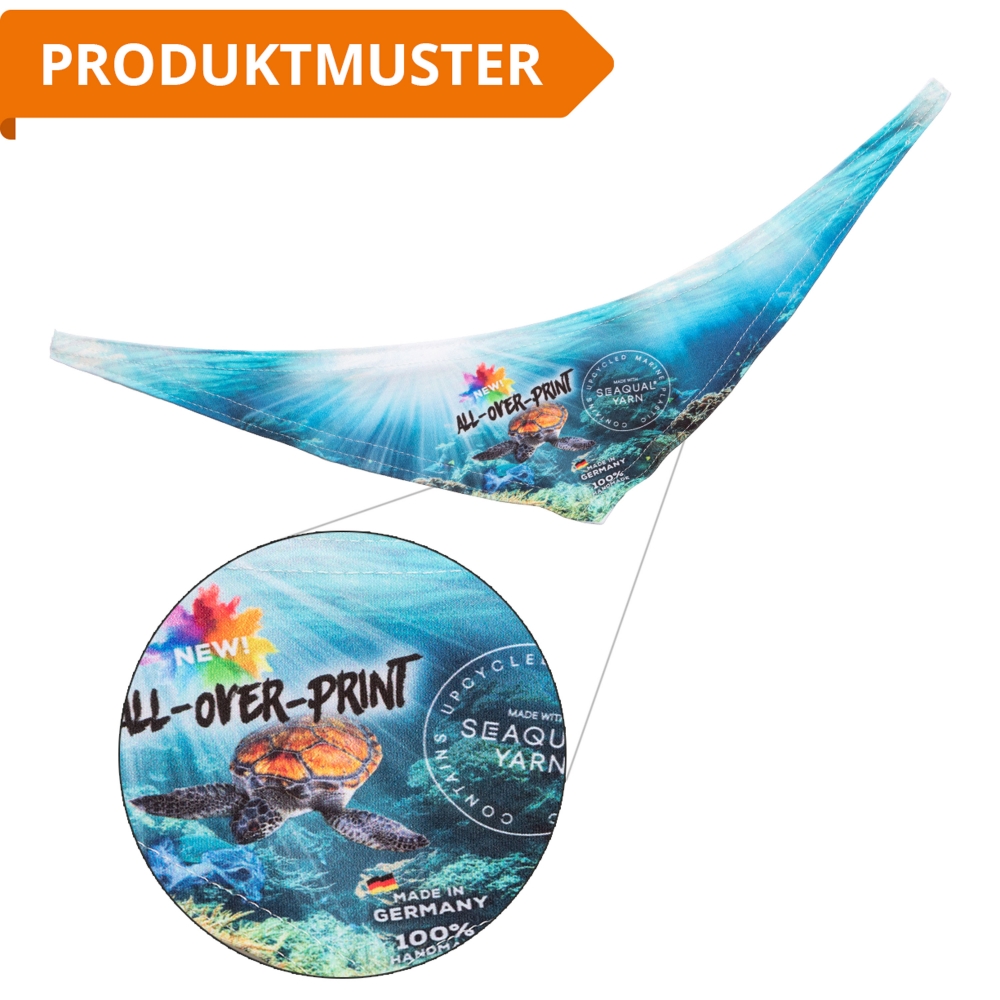 Artikel-Nr: GUT10007682Ein Dreiecktuch ist bei sitzenden Tieren, die einen T-Shirt-Aufdruck mit ihren Vorderbeinen verdecken würden, die richtige Wahl, um Werbung optimal in Szene zu setzen. Das Dreiecktuch All-Over-Print besteht aus recyceltem Plastik, u. a. Upcycled Marine Plastic aus den Weltmeeren. Hiermit lassen sich auffallende Accessoires basierend auf Arbeitskleidung, Saisons, Jahreszeiten, Events oder nahezu allen fotorealistischen Motiven erstellen. Erhältlich in verschiedenen Größen. Stylish für Ihre Kunden, gut für unsere Umwelt!