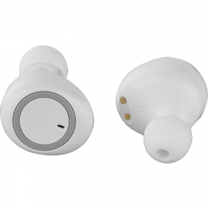 Artikel-Nr: NMT527Die totale Freiheit! Ohne Kabel können Sie mit diesen Earbuds unbeschwert Musik genießen oder telefonieren: Set mit zwei TWS Wireless 5.0 Stereo Ohrhörern und Ladestation. Batteriekapazität: 40 mAh 2 x (Earbuds) / 300 mAh (Ladeschale) Frequenz 20 Hz - 20 kHz, Entfernung zur Audioquelle max 10 m Betriebsdauer ca. 2 h, Ladezeit der Earbuds ca. 1,5 h Material: ABS Farbe: Weiß Einzelverpackung Lieferung mit 30 cm Micro USB Ladekabel Maße: 72 x 39 x 31mm Gewicht: 40g Werbeanbringung: Auf dem Deckel der Ladebox 40 x 15 mm (D2, UV2) Auf der Vorderseite der Ladebox 30 x 5 mm (D2) Auf dem Hörer 12 mm Durchmesser (D2) Angesagt, bassstark und dieses Produkt unterstützt aktiv den Ausgleich der entstehenden CO2-Emissionen durch zertifizierte Klimaschutzprojekte.