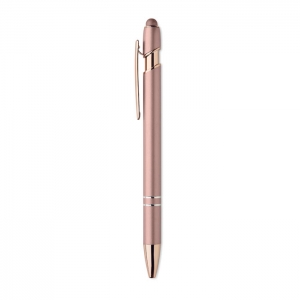 Artikel-Nr: OCBMO2380-95Druckkugelschreiber mit Stylus aus recyceltem Aluminium mit rosé goldenen Details. Blaue Tinte.