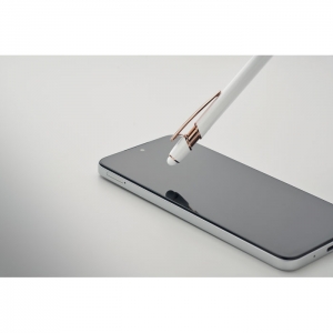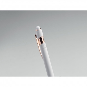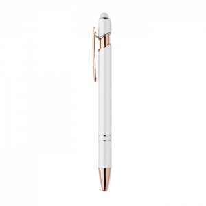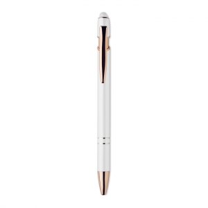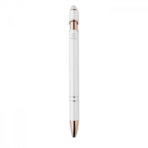 Artikel-Nr: OCBMO2380-06Druckkugelschreiber mit Stylus aus recyceltem Aluminium mit rosé goldenen Details. Blaue Tinte.