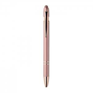 Artikel-Nr: OCBMO2380-95Druckkugelschreiber mit Stylus aus recyceltem Aluminium mit rosé goldenen Details. Blaue Tinte.