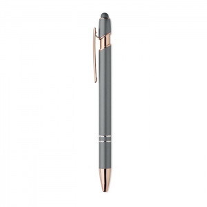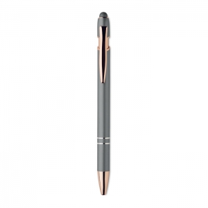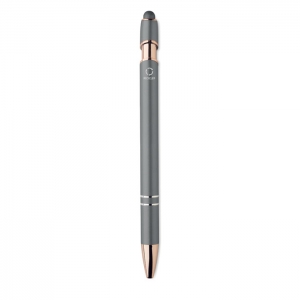Artikel-Nr: OCBMO2380-15Druckkugelschreiber mit Stylus aus recyceltem Aluminium mit rosé goldenen Details. Blaue Tinte.