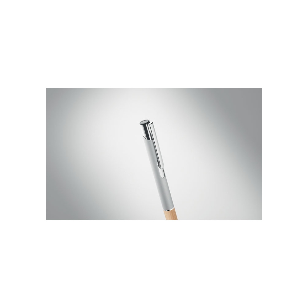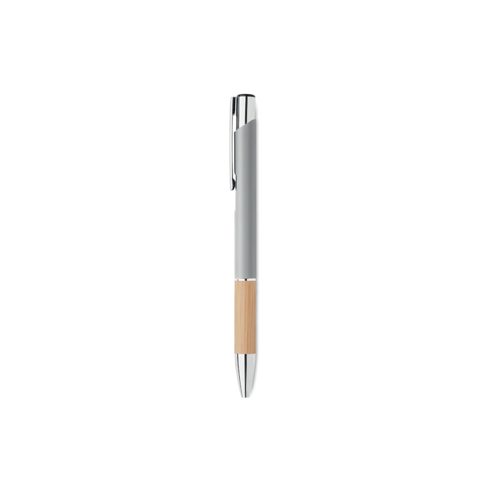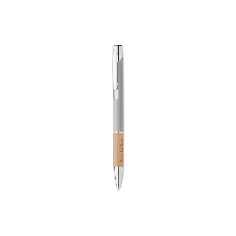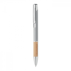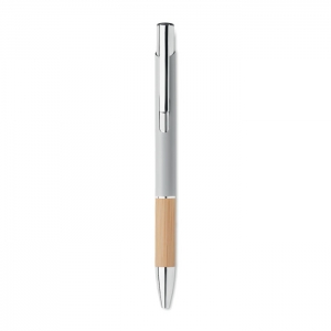 Artikel-Nr: OCBMO2159-16Druckkugelschreiber. Aluminium mit Griffteil aus Bambus. Blaue Tinte.