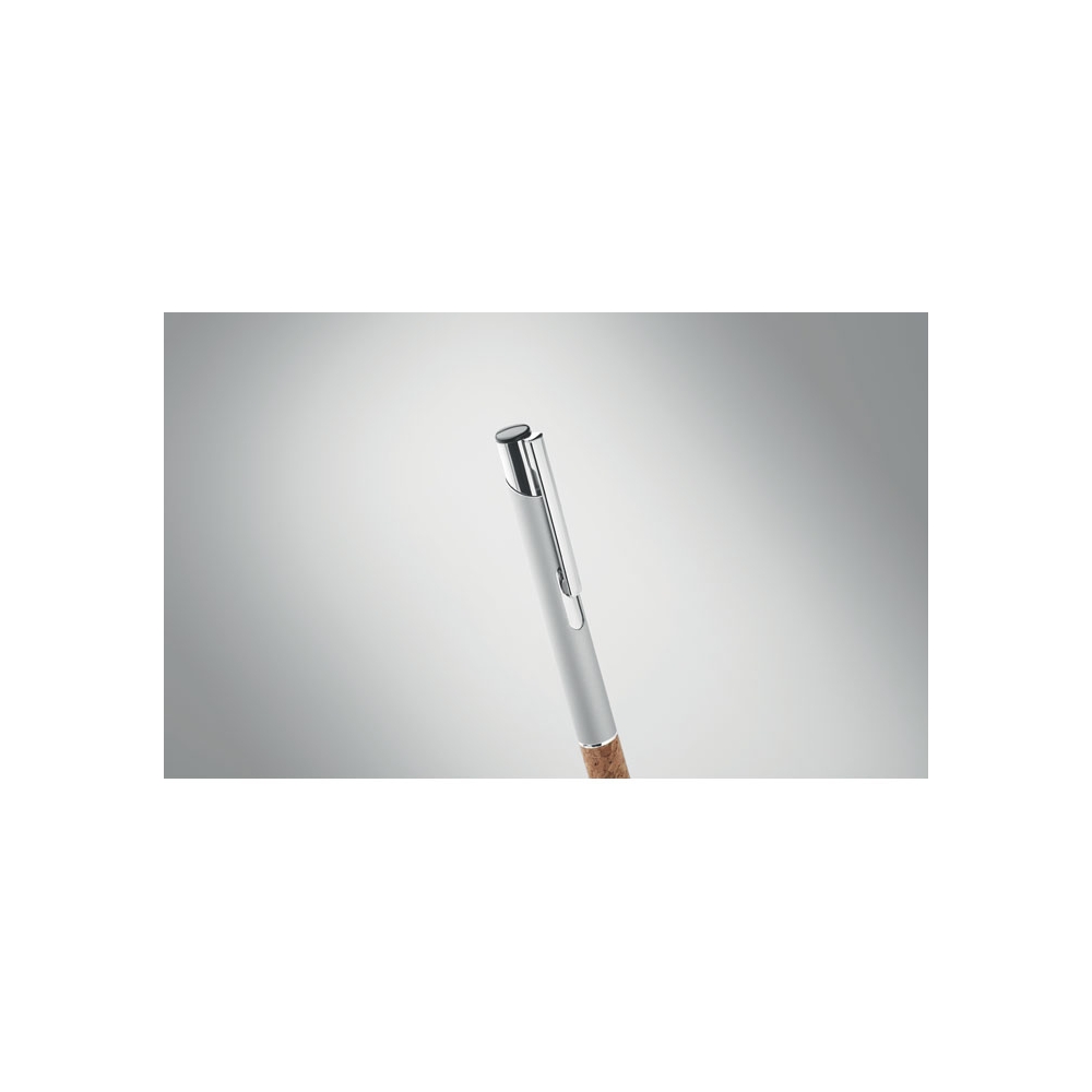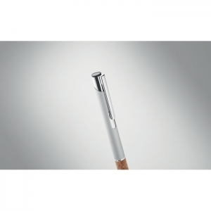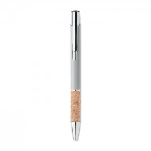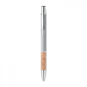 Artikel-Nr: OCBMO2158-16Druckkugelschreiber. Aluminium mit Griffteil aus Kork. Blaue Tinte.