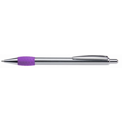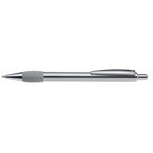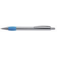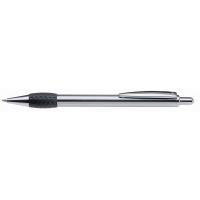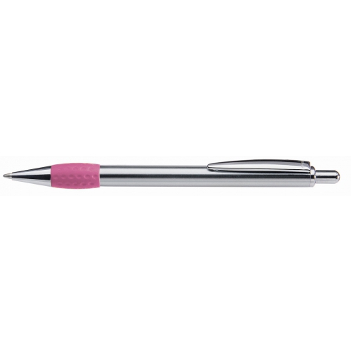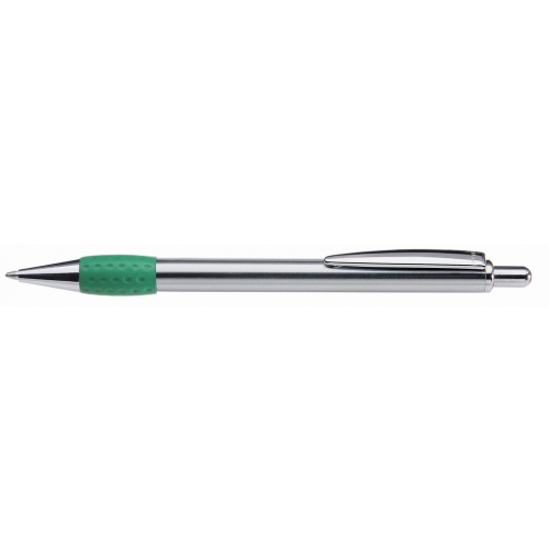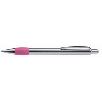 Artikel-Nr: 60209440Metall-Druckkugelschreiber mit glanz verchromtem, lackiertem Schaft, Drücker, Clip und Spitze. Gummigriffzone farbig.