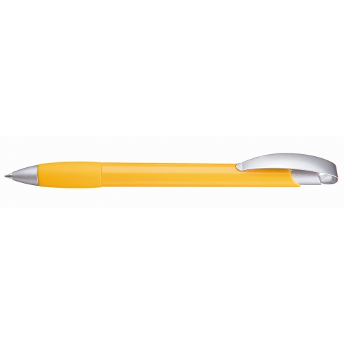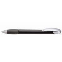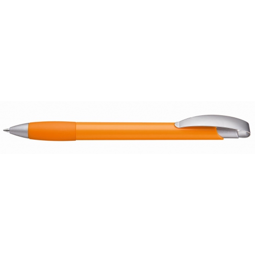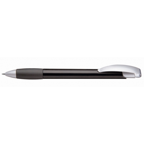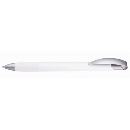 Artikel-Nr: 60200012SIDruckkugelschreiber mit geschwungenem, matt verchromtem Metallbogenclipdrücker und gepolsterter Softgriffzone. Spitze matt silber.