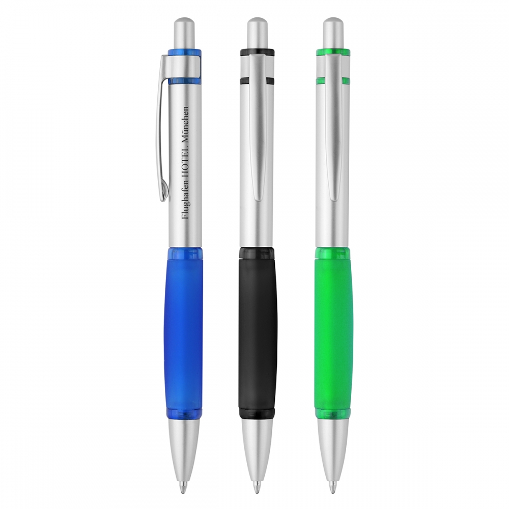 Artikel-Nr: HLA8280-S-3Druckkugelschreiber "Gamma" mit Softgripzone, Großraummine, blau schreibend. Versandbereit innerhalb von 5 Arbeitstagen nach Druckfreigabe.